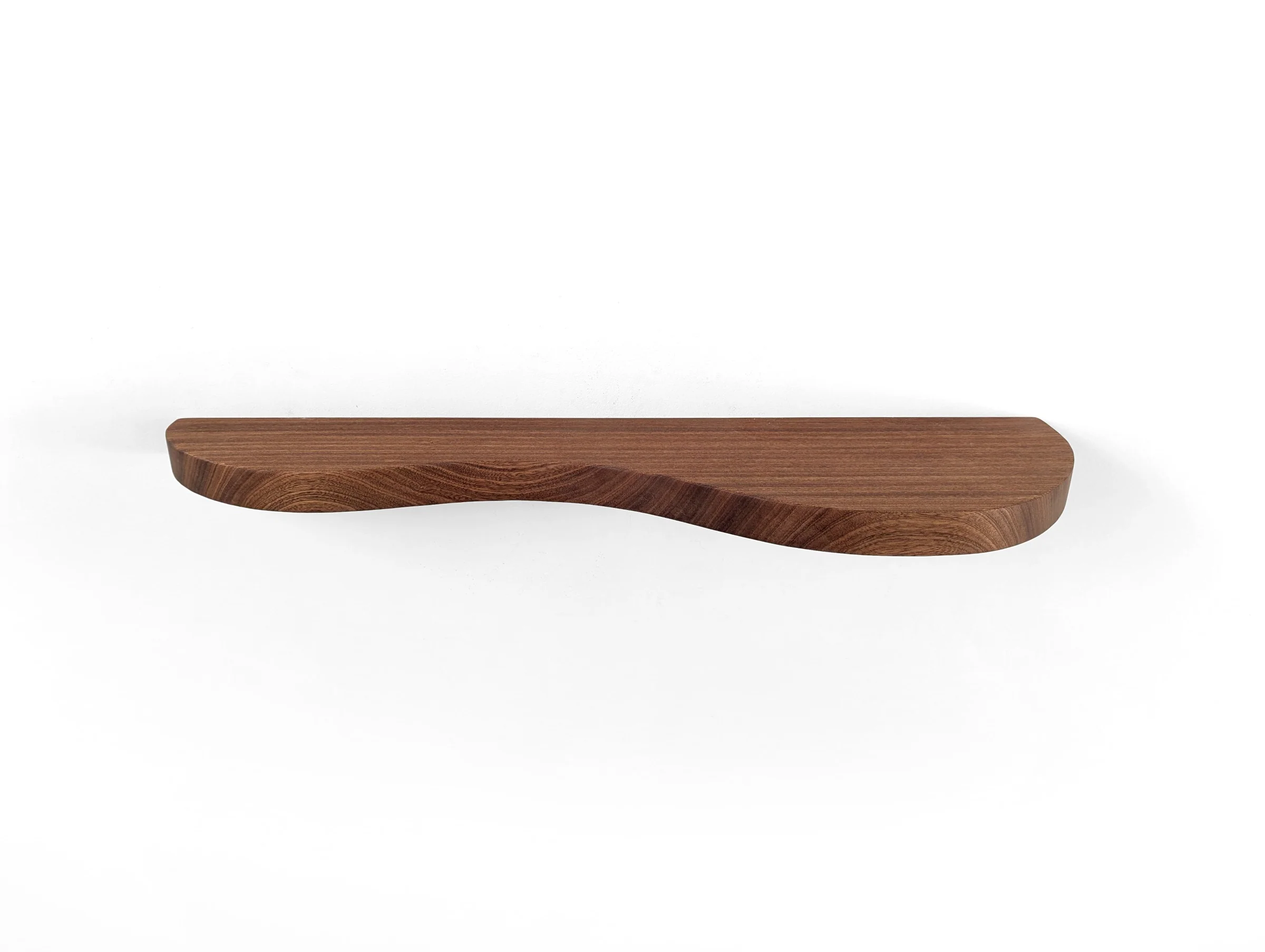 Each shelf is meticulously handcrafted from premium solid mahogany and treated with Danish oil to enhance its natural beauty, highlighting the warm reddish-brown hues while ensuring long-lasting durability with minimal upkeep. Whether styled in a living room, bedroom, kitchen, or office, this handmade wavy floating shelf adds a touch of luxury and sophistication to any space.
