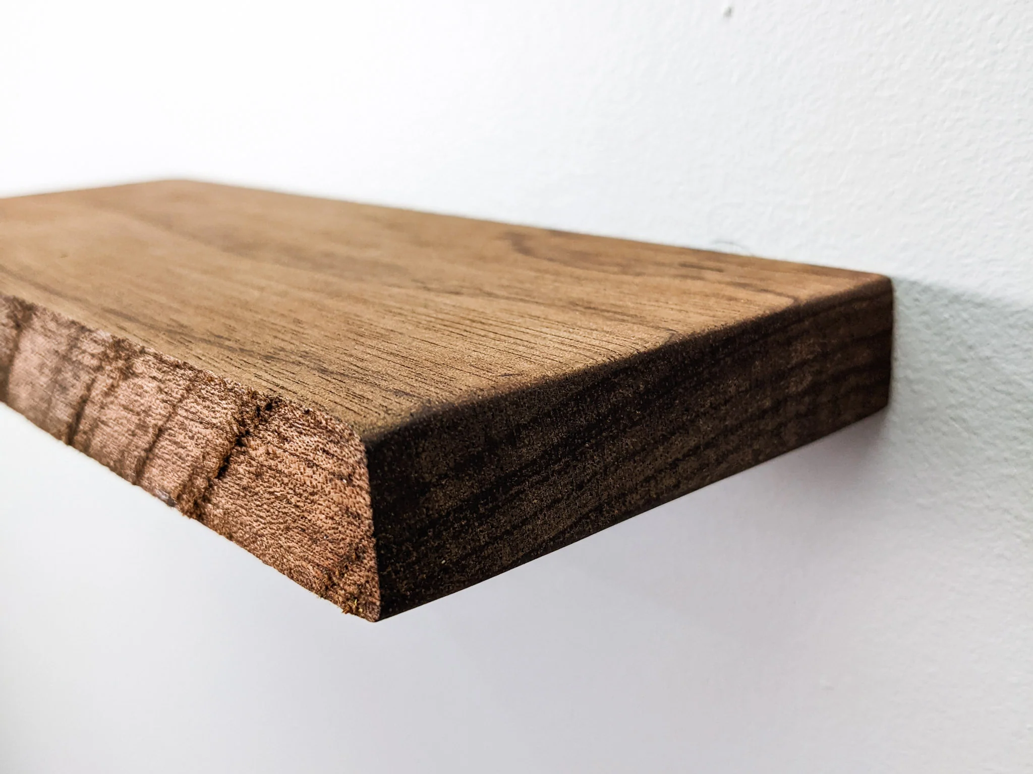 Available in a range of lengths from 6" to 36" and depths from 3" to 8", our rough-cut floating shelves are delivered with sturdy steel brackets, ensuring an effortless installation. The sleek and modern floating shelf bracket design contributes to the shelf's visual appeal and provides ample support for your cherished items.